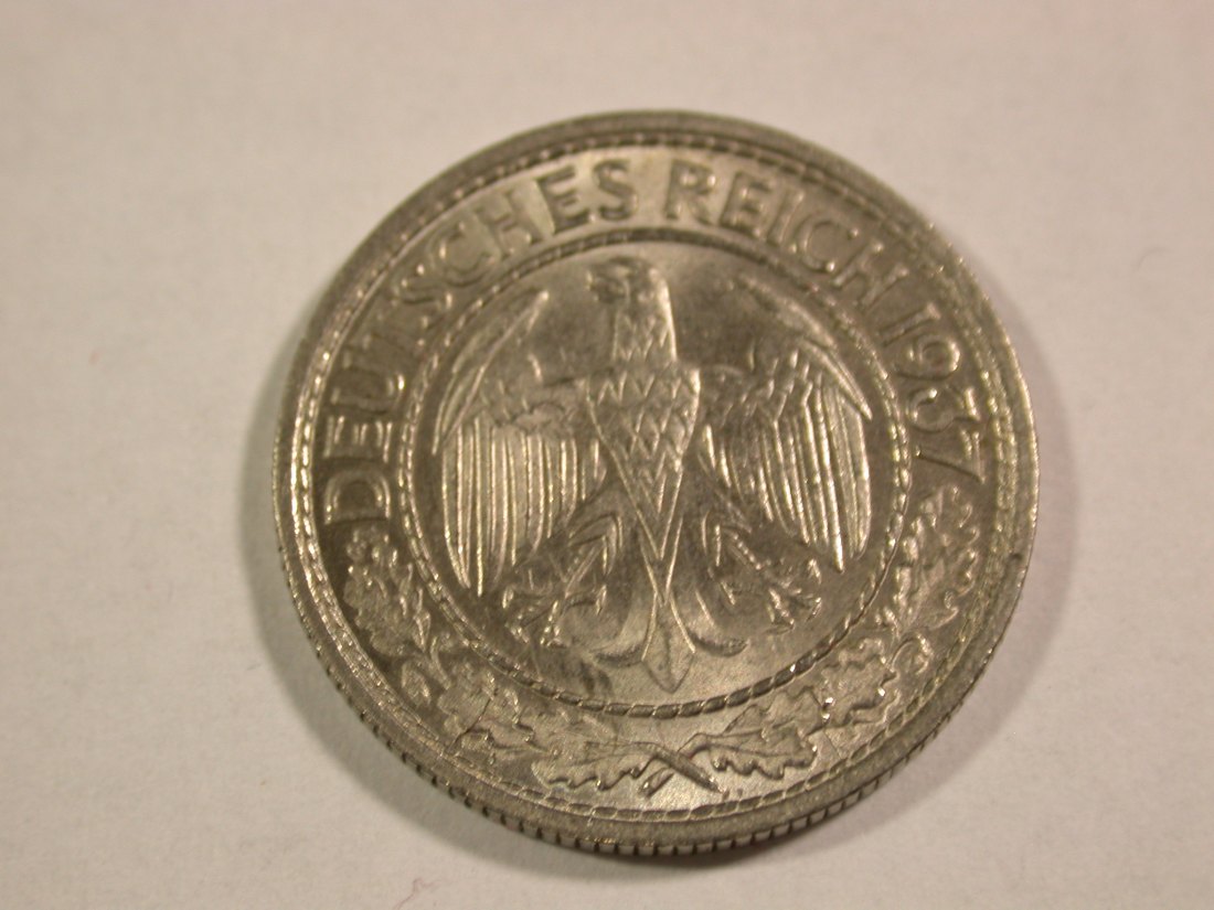 B15 Weimar 50 Pfennig Nickel 1937 D in vz-st Originalbilder