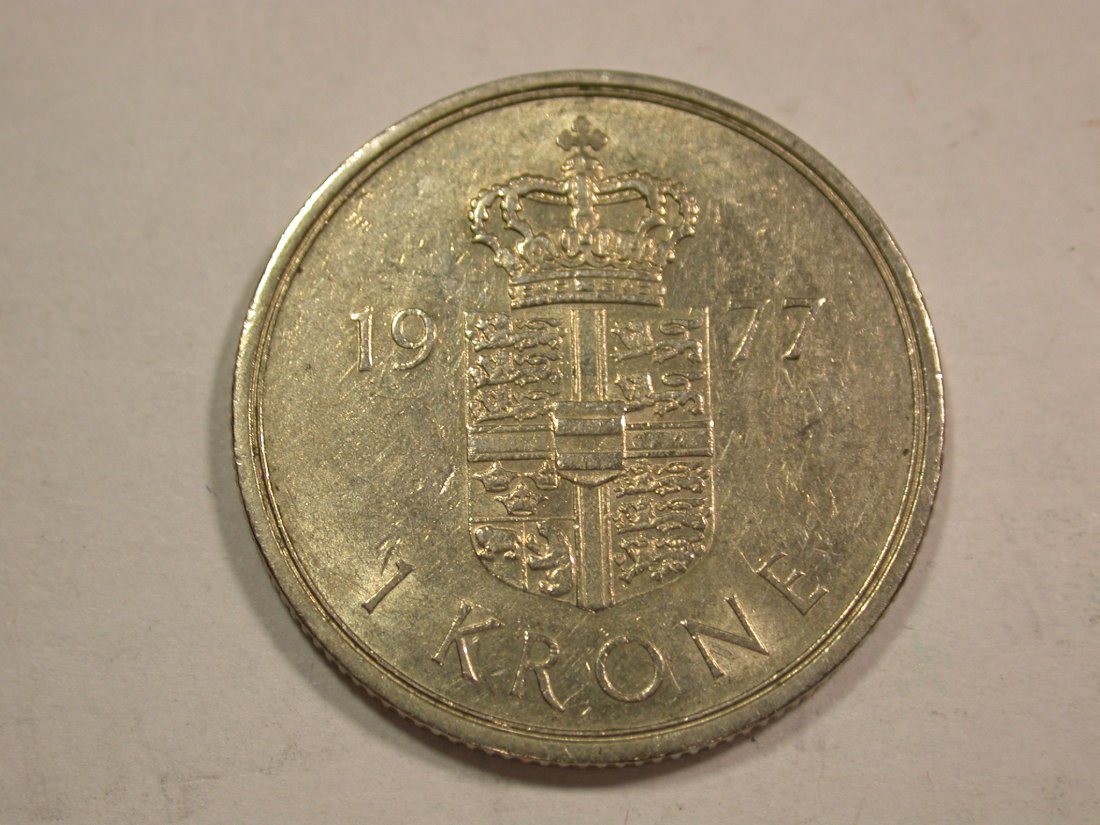 B20 Dänemark 1 Krone 1977 in vz Originalbilder