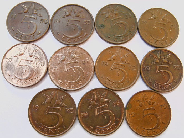 Niederlande 11 x 5 Cent 1950-1979