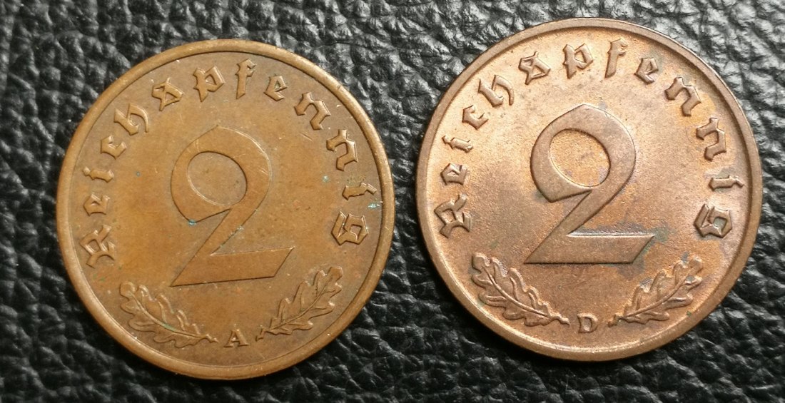 2 Reichspfennig 1940 D + A Deutsches Reich Jaeger 362 XXL Bilder 1940 D seltener