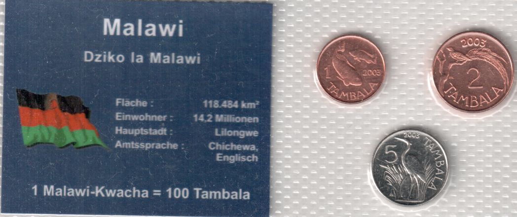 Malawi 1 + 2 + 5 Tambala 2003 UNC in Blister