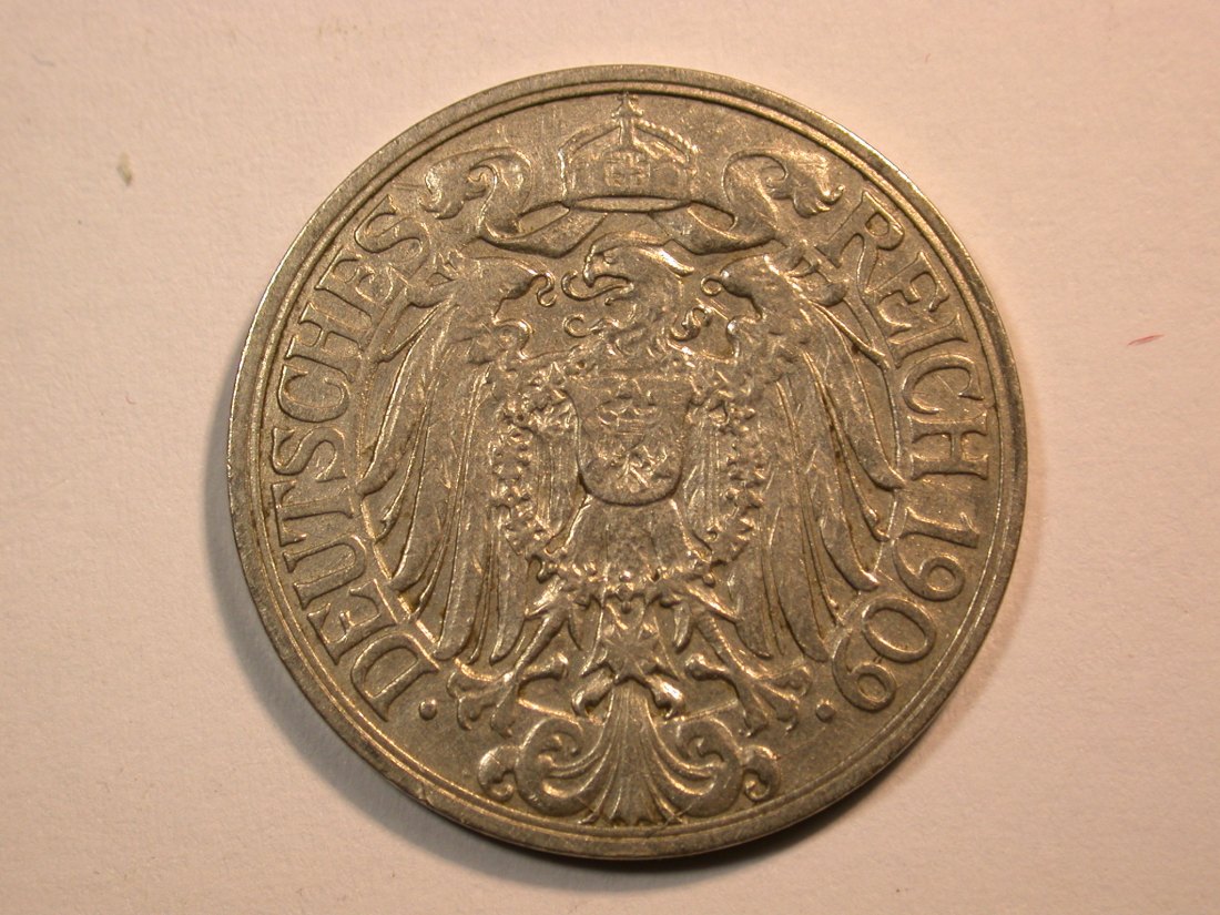 F11 KR 25 Pfennig 1909 F in ss+/ss-vz Originalbilder
