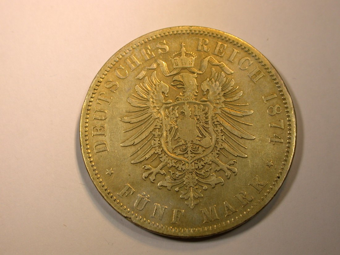 F13 KR 5 Mark Preussen 1874 A in s-ss, angelaufen Silber Originalbilder