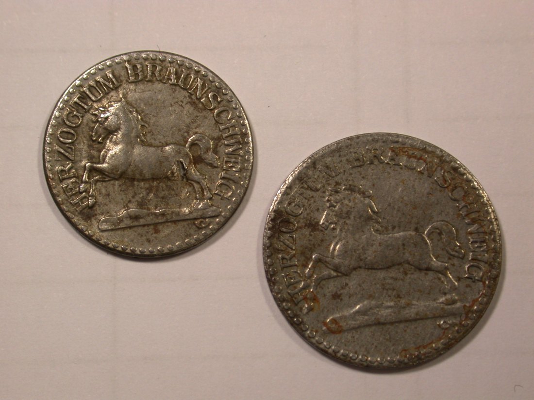 F19 Notgeld Braunschweig Herzogtum 5 und 10 Pfennig 1918 in l. fleckig sonst vz Originalbilder