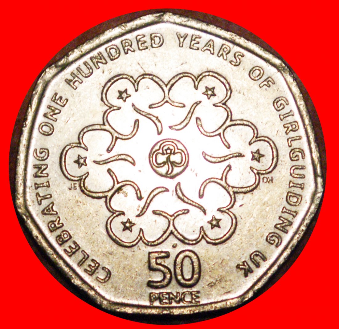 Interesting large commemorative coin in attractive condition with stars atop of clover leaves dedicated to the 100th anniversary of Girlguiding charity organization.