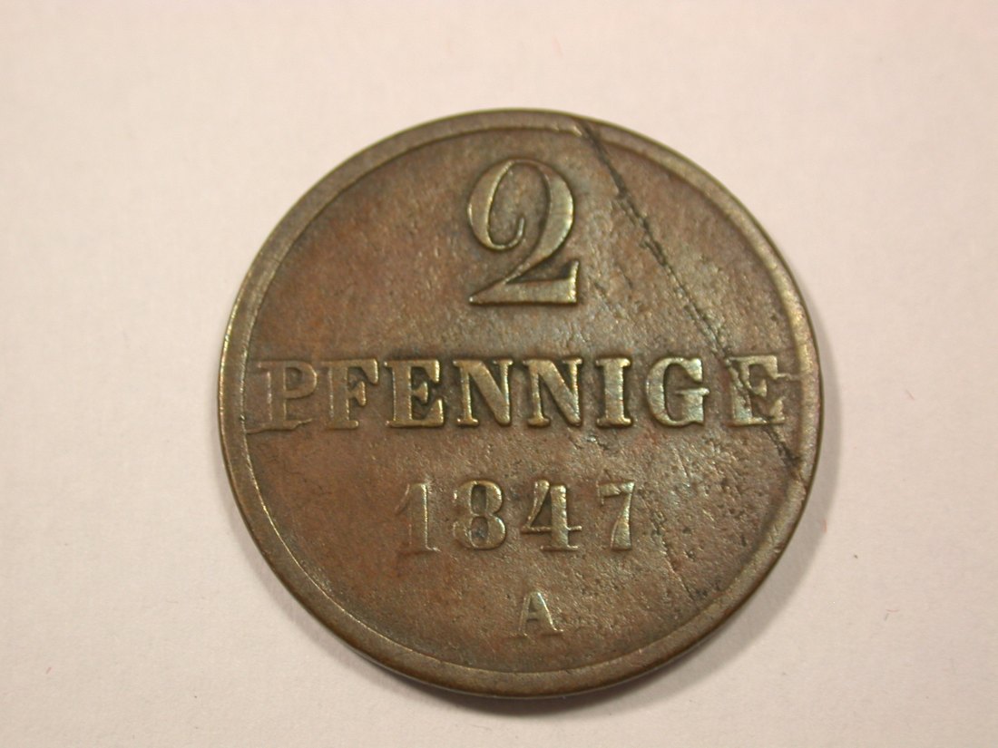 G12 Hannover 2 Pfennig 1847 A in f.ss Originalbilder