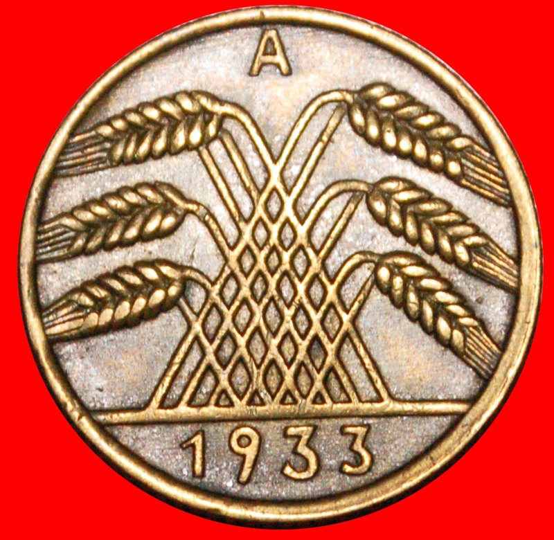 * DRITTES REICH (1933-1945): DEUTSCHLAND ★ 10 REICHSPFENNIG 1933A SELTEN! OHNE VORBEHALT!