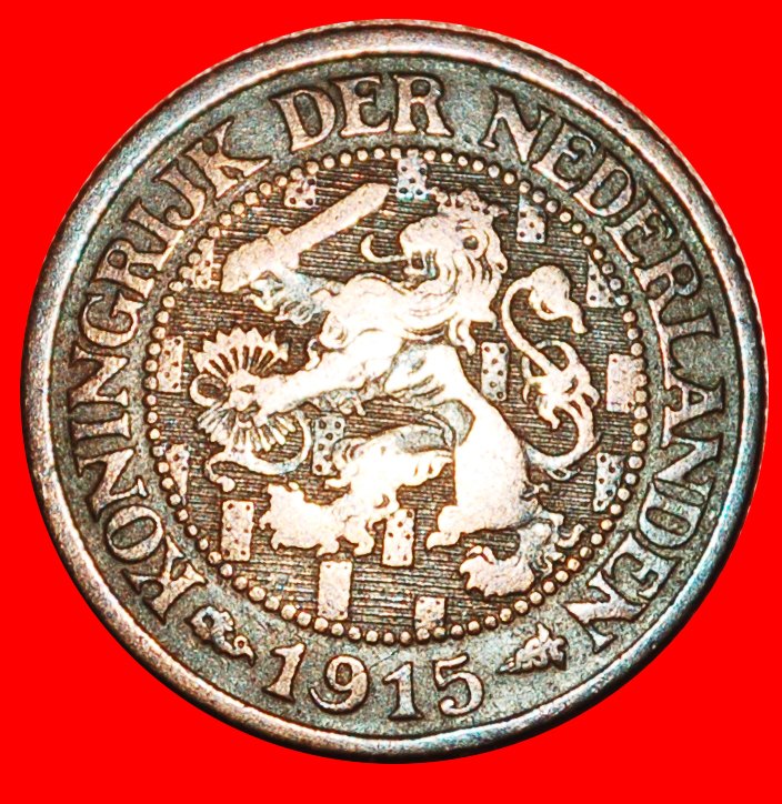 * RAMPANT LION (1913-1941): NETHERLANDS★ 1 CENT 1915! WILHELMINA (1890-1948)★LOW START ★ NO RESERVE!