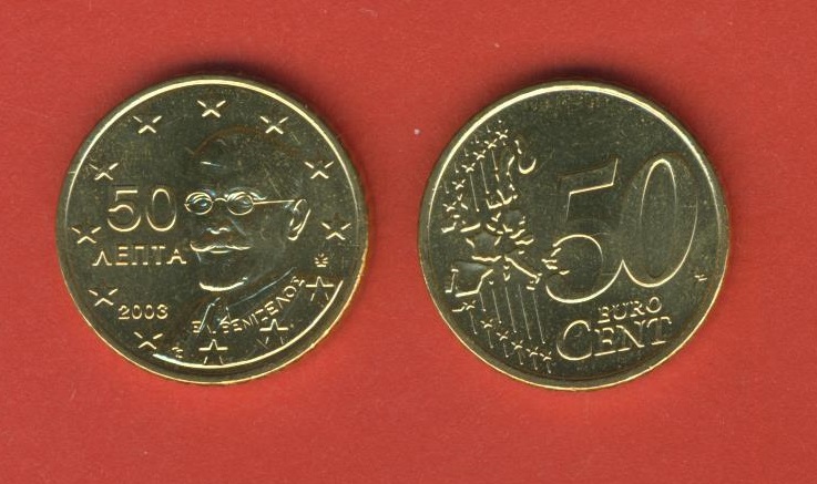 Griechenland 50 Cent 2003 bankfrisch aus der Rolle entnommen Auflage nur 700 000 Stück RAR.