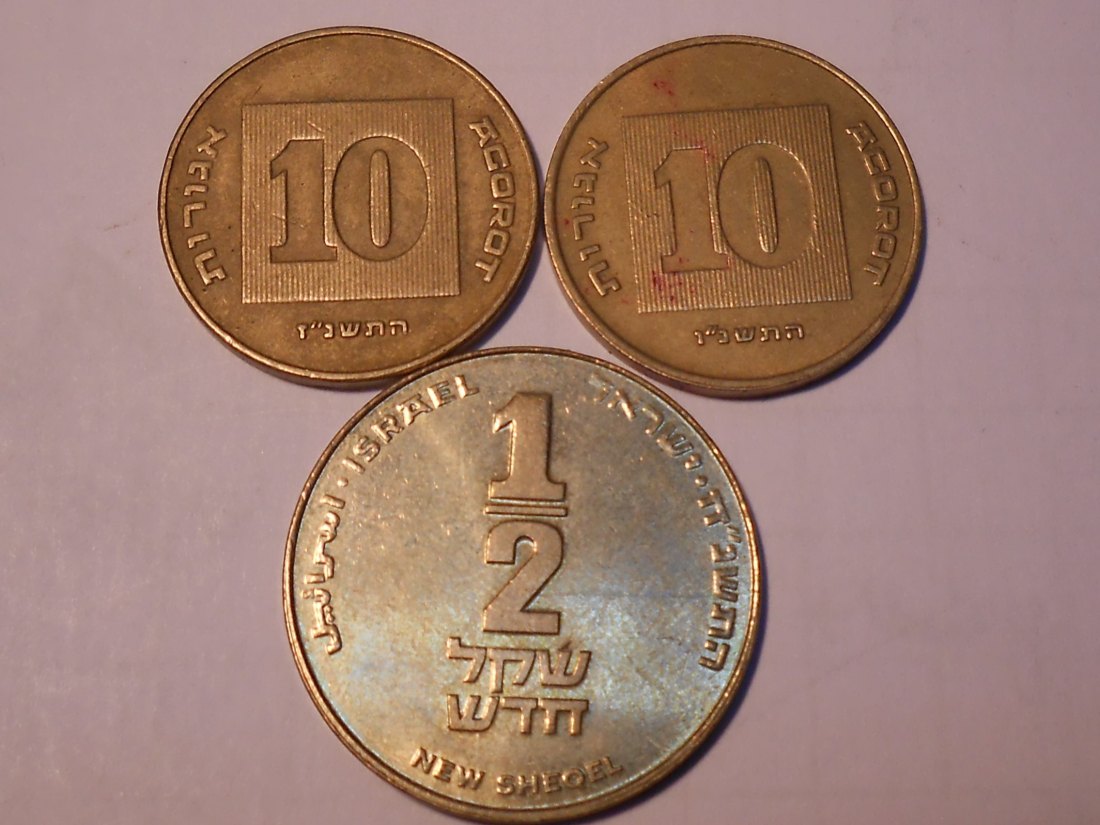 M.89. Israel, 3er Lot, 10 Agorot 1992+1994, ½ neuer Schekel 1998