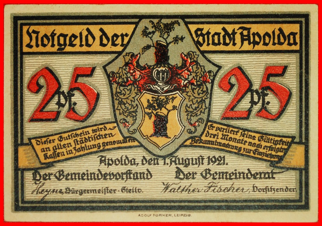 * THÜRINGEN: DEUTSCHLAND APOLDA ★ 25 PFENNIG 1921 NACKTE FRAU RITTER! LEIPZIG uKFR KNACKIG! OHNE VORBEHALT!