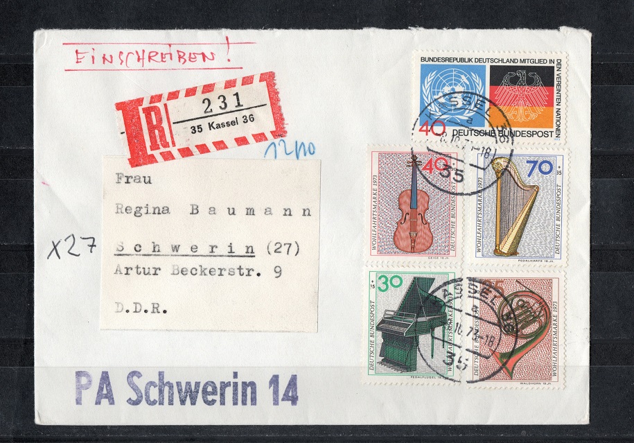BRD 1973 Einschreiben mit Mi. 781-785 Echt gelaufen