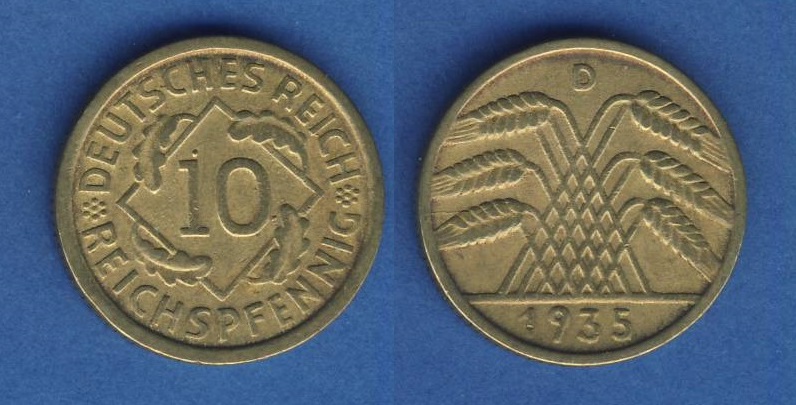 Weimarer Republik 10 Reichspfennig 1935 D