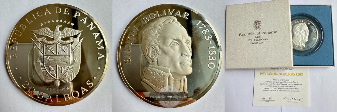 Panama 20 Balboas 1973 150. Jahrestag der Unabhängigkeit FM-Frankfurt Feingewicht: 119,87g  TOP auction